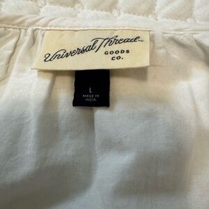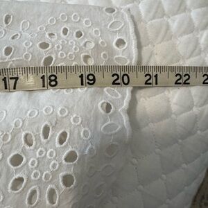 Elegant white dress with delicate embroidery, perfect for any occasion. Size Large. Perfect for sunny summer days. Skirt is lined. Pit to pit is 19 1/2”, skirt length is 20 1/2”. 100% cotton. Easy care. Excellent condition.