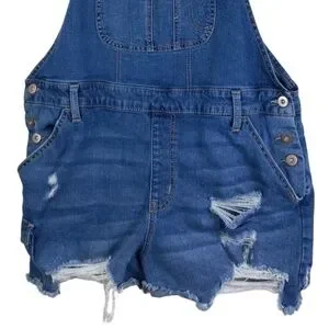 No Boundaries XXL 2X 19 Juniors Overall Shorts Romper Jean Denim Distressed