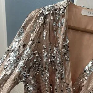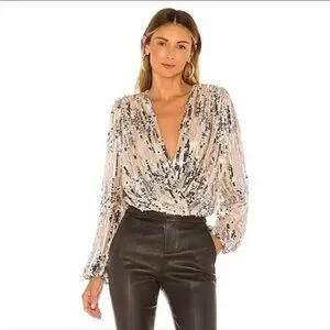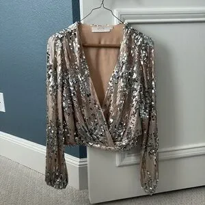 ASTR The Label Primadonna Silver & Tan Sequin Top - Small, 4 - 6
