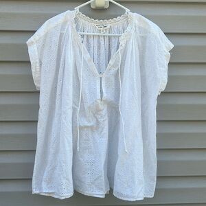Nili Lotan | Brittany White Eyelet Cap Sleeve Blouse size Extra Small
