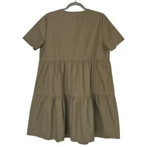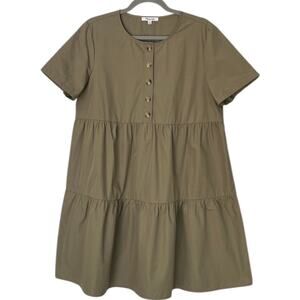 Madewell Button-Front Short-Sleeve Tiered Mini Dress Cotton Poplin Green NWT M