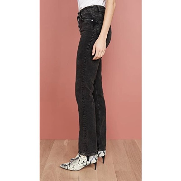 Featuring a subtly faded wash, slim-straight style, and high rise, Reformation's Liza jeans are one of those perfect pairs that it doesn't hurt to stock up on. Faded black jeans, runs a half size small