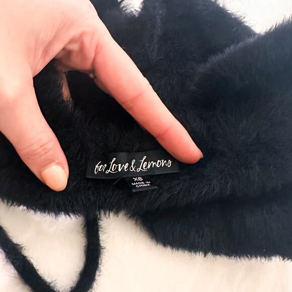 FOR LOVE & LEMONS Fiona Fuzzy Teddy Black Crop Bralette Tank Sz. XS