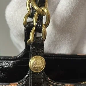 Coach Cheetah print shoulder bag gold/black/patent leather trim chain strap