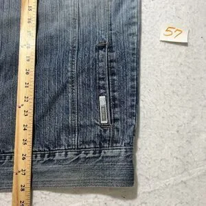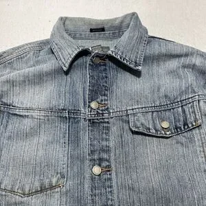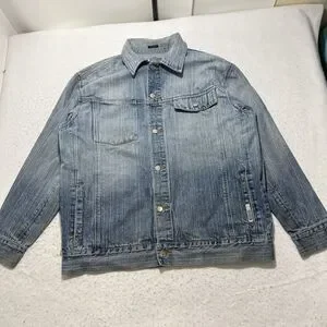 GB Black Label Men's Large Denim Jean Jacket Light Blue Distressed Metal Buttons