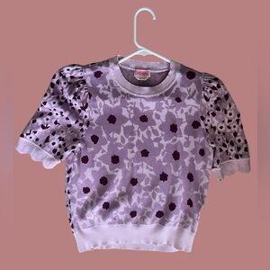 Kate Spade Pink & Burgundy Floral Knit Puff Sleeve Top – Size Large