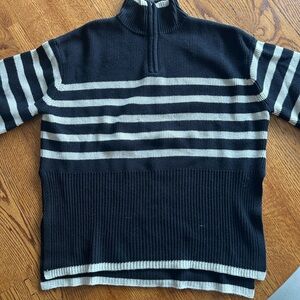 RAILS SWEATER BLACK W/WHITE STRIPE QUARTER ZIP