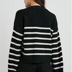 Rails TESSA SWEATER onyx Ivory stripe. Made from cozy wool blend, quarter zip pullover with drop shoulder and loose fit. 55% Merino Wool/45% Cotton