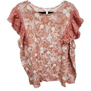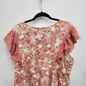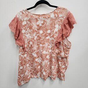 LC Lauren Conrad Womens BOHO Top Size 4X Coral Tropical Print Flutter Sleeve
