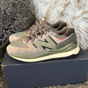 Stylish rate New Balance sneakers with a multicolor design. Features shades of tan, green, and orange. This pair was only worn once for my YouTube video channel video shoot then stored away in a smoke free and dust free environment. Very clean and great condition.