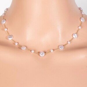 This necklace brings a unique dainty flat pearl bead style. Discover the perfect balance of functionality and fashion. MADE IN KOREA 40% BRASS 60% ACRYLIC PEARL