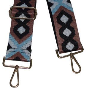 Flashback to the 70s with this far-out guitar strap! Replace your strap with this adjustable multi coloured embroidered accessory to change the look of your bag/handbag/purse/dufflebag. Gold hardware.