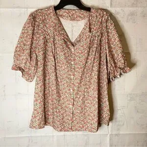 DAZY Short Sleeve Blouse with Vintage Floral Print Size XL