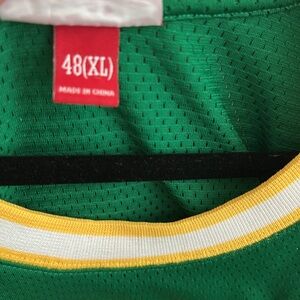 Vibrant green Sonics basketball jersey with yellow and white accents. Features number 20. Gary Payton. Pretty good condition-very few marks please see photos.