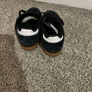 Stylish Adidas Busenitz sneakers in black with iconic white stripes. Perfect for casual wear. Women’s size 8.5