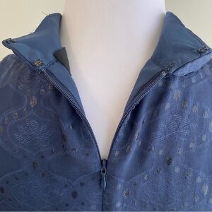 Tags: all plain solid dark royal blue metallic shimmering spots flower floral antique damask fragments pattern design print printed brocade puffed sleeves fitted waist nape mock neck flowy flowing sweeping full floor length designer Xs small S EMF-125-LR #11