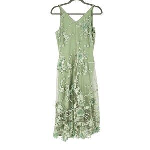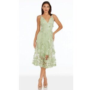 Dress the Population Audrey Floral Mesh Overlay Dress in Sage