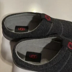 UGG slippers men’s size 8 converts to a women’s size 91/2 - 10 dark gray with white stitching across the top. Brand New no box or tag.