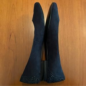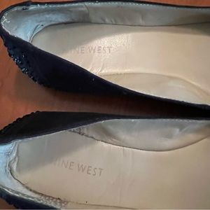 NINE WEST NAVY BLUE SUEDE FLATS WITH BEADED HEELS