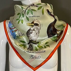 Delightful Vintage Australia Bird Theme Souvenir Scarf 26 In Sq Excellent Cond