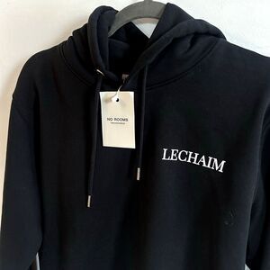 No Rooms Roomers Men’s Black Lechaim Print Hoodie Kangaroo Pocket Size L. NEW