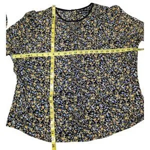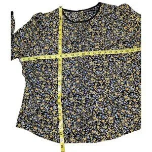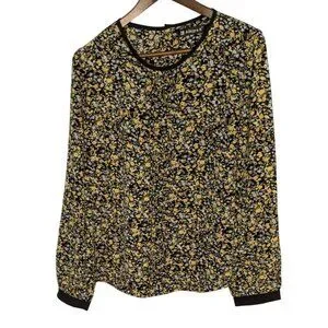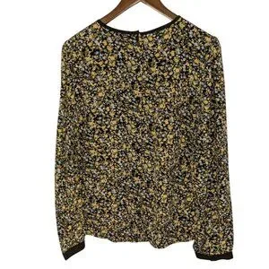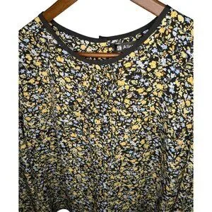 Allegra K Womens Floral Long Sleeve Top XL Black/Yellow/Blue