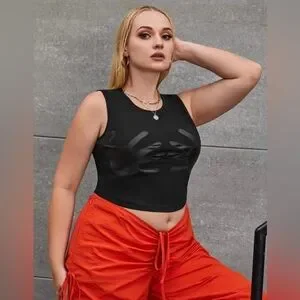 Stylish black sleeveless top with unique design. Perfect for a bold, modern look. Size 2X from SHEIN Curve, lightly worn.