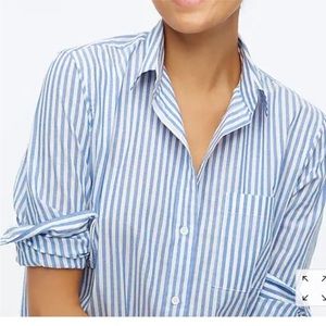 XS blue and white long sleeve relaxed button down shirt from J. Crew. Style AY488. Oversized. Slouchy. Preppy. 100% cotton. In great preloved condition. Thank you for visiting my closet and supporting a small business. Check out the rest of my closet for similar styles and sizes! Bundle three items and save 15%