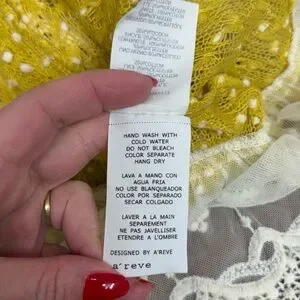 A’reve Mustard Yellow Lace Floral Ruffle Hem Cardigan Tunic Size Medium