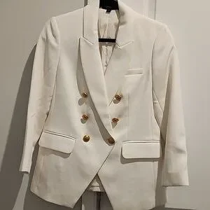 Worn Once Express Novelty Button Blazer with 3/4 Sleeves, Size 6, Ivory with Gold Buttons