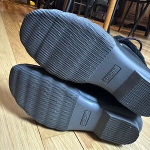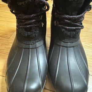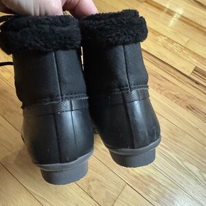 Warm black boots with faux fur lining. Ideal for winter wear. Side zip, and front laces.