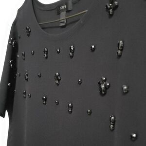 Elegant black top with stunning embellishments. Perfect for any occasion.