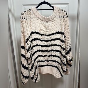Evereve John + Jenn Cream and Black Stripe Sweater with Open Weave