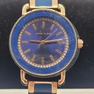 Anne Klein Gold with Blue Accents is in excellent condition with no damage and protection film still on the face of the watch.
