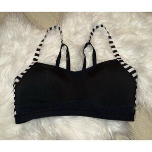 Brooks Fineform Sports Bra Wire Free Striped Trim Womens L Large 36CD-38C Black