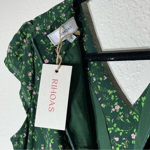 RIHOAS The V Neck Frill Trim Midi Grass Green Dress Sz S NWT