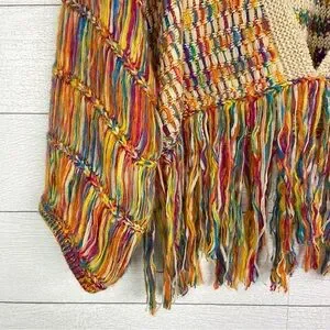 ETWO Rainbow Cropped Sweater Colorful Fringe Medium Large Boho