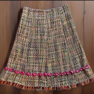 HANDMADE Skirt Womens Small Multicolor Tweed A-Line Bow Fringe Trim Girlhoodcore