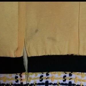 This early 70s dress and jacket set is in good condition. There is some color transfer from the black trim which I tried to show in photos. There are no size or material tags but it measures like a modern XS. There is no stretch to the material.