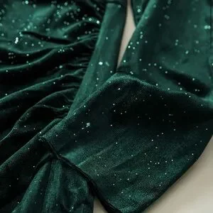 Green Velvet Glitter Ruched Bodycon Wrap Dress