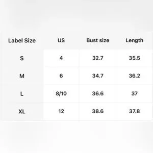 Available Sizes: Small (4) Medium (6) Large (8/10) X-Large (12)