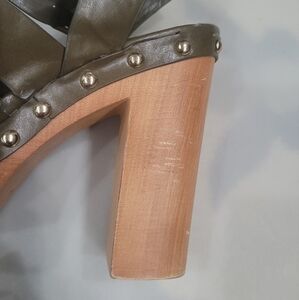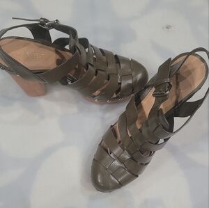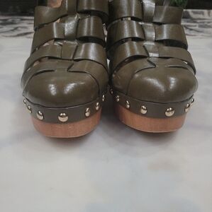 Leather Nine West Cage Chunky Heel Sandals Sz 10 Army Green Fisherman Clogs