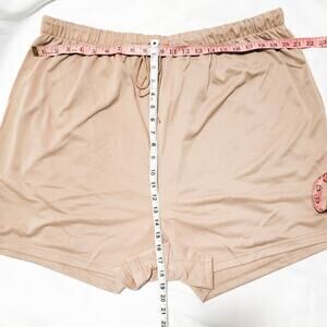 Shorts approximately 20-1/2" across unstretched, 17" rise, 3-1/4" inseam