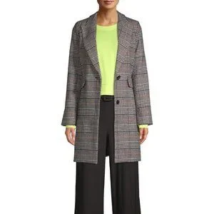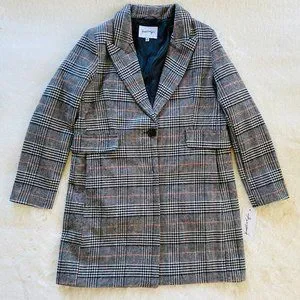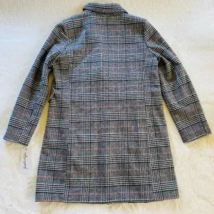 Kendall & Kylie Black & Brown Plaid Menswear-Inspired Winter Coat NWT MSRP $180