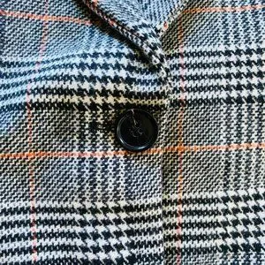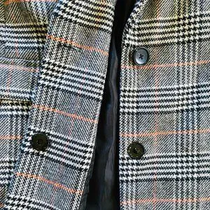 Stay warm in style with this stunning black and brown plaid, menswear-inspired winter coat from Kendall & Kylie. Made from a polyester, acrylic, and nylon-blend, this mid-length coat features a button and snap closure, notch collar, and shoulder pads for sharp tailoring. Perfect for winter and fall, it is suitable for casual wear, workwear, or business occasions. The knit fabric type with polyester lining provides ample warmth. This coat also boasts side-pockets, faux front pockets, and a spare button.