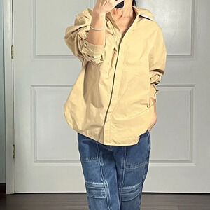 Zara 100% cotton oversized camel Button Down Shirt size XS