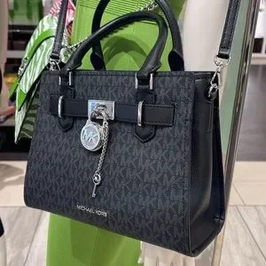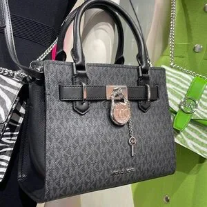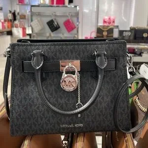 Michael Kors Hamilton Small Signature Logo Satchel Crossbody Bag Black /Silver