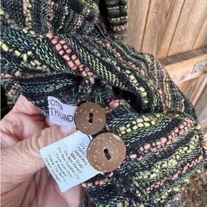 YASUKO KURISAKA Large nubby green peach black JACKET 100% Cotton Lagenlook
