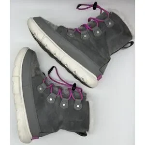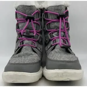 Sorel Kids Quarry Grey/Bright Lavender Explorer Lace WP Boot US 5