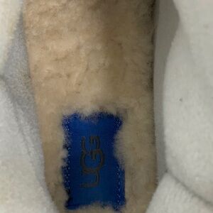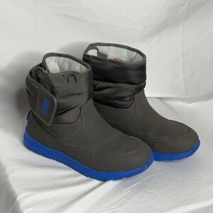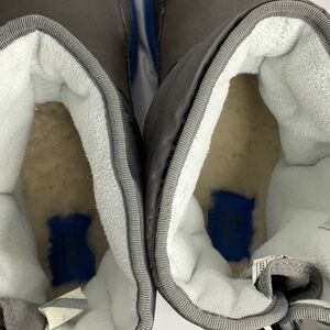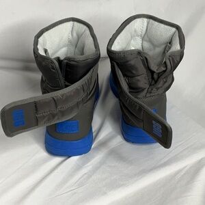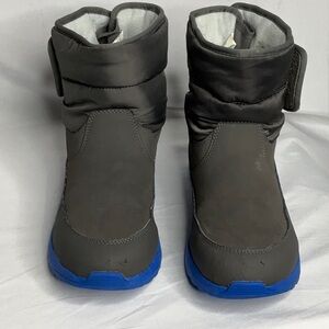 Stylish UGG boots for rain and snow. Gray upper with blue sole. Comfortable and durable. Insulated Lining is 3M Thinsulate. UGG shearling footbed. Velcro side closure. EUC